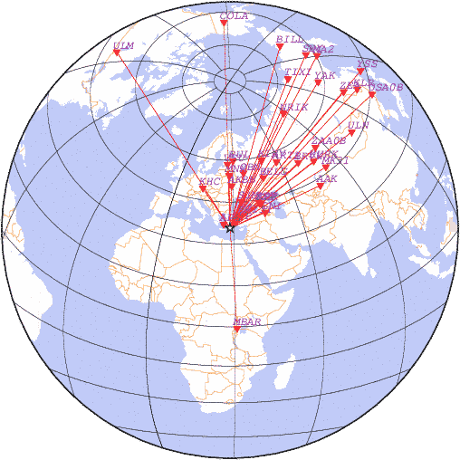 Азимут | Точность | Ms | mb |
