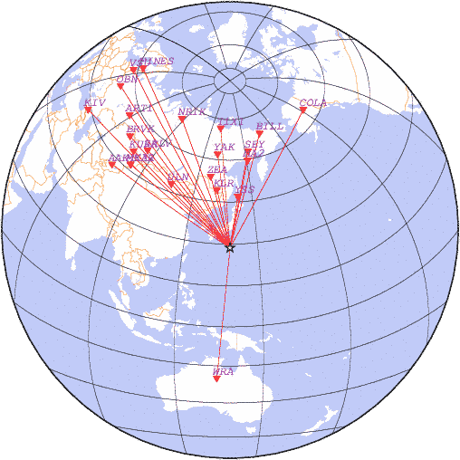 Параметры землетрясения в районе Район островов Бонин, РЇРїРѕРЅРёСЏ, время 2019-04-21 09:14:06, широта 28.65, долгота 138.76, глубина 490 км, mb: 4.4/14 рассчитаны по станциям: