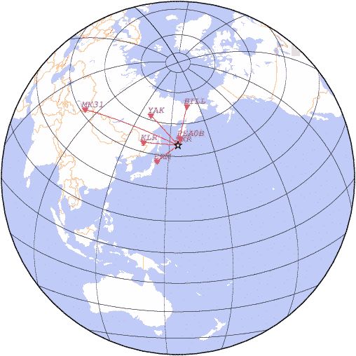 Параметры землетрясения в районе Курильские острова, время 2020-07-10 12:21:33, широта 50.03, долгота 156.04, глубина 110 км, mb: 4.1/2 рассчитаны по станциям: