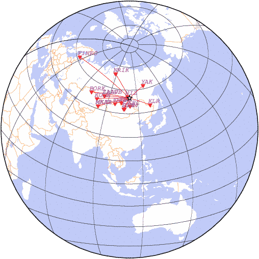 Параметры землетрясения в районе Район озера Байкал, Р РѕСЃСЃРёСЏ, время 2020-07-10 21:11:53, широта 54.93, долгота 111.74, глубина 10 км, mb: 3.9/3 рассчитаны по станциям: