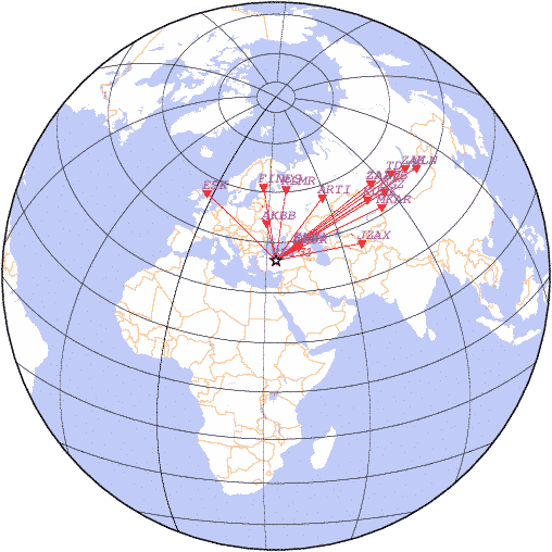 Параметры землетрясения в районе Турция, время 2025-09-22 06:03:44, широта 39.60, долгота 33.58, глубина 10 км, mb: 4.5/9 рассчитаны по станциям: