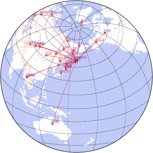 Earthquake parameters in region Near east coast of Kamchatka, date 2025-09-13 00:30:44, lat 51.62, lon 158.69, depth 50 km, mb: 4.6/9 detemined with station data: