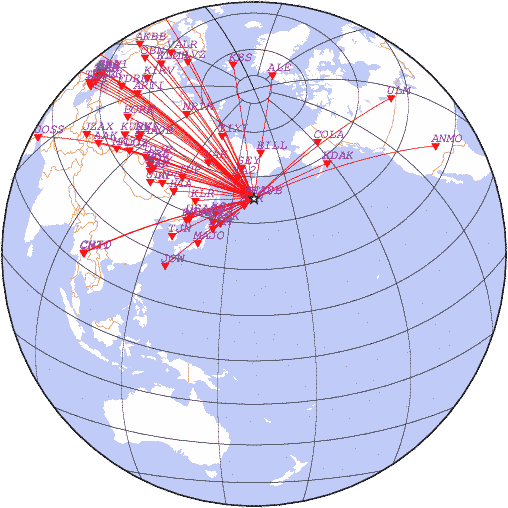 Earthquake parameters in region Off east coast of Kamchatka, date 2025-09-18 19:26:40, lat 52.80, lon 160.98, depth 25 km, mb: 5.8/46 detemined with station data: