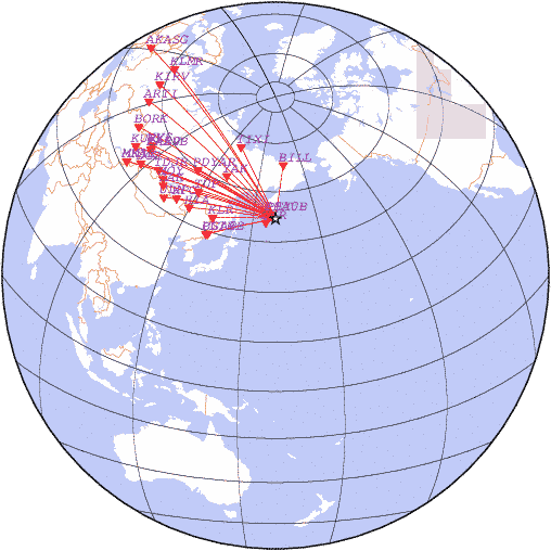 Earthquake parameters in region Off east coast of Kamchatka, date 2025-09-18 21:03:03, lat 51.91, lon 160.59, depth 40 km, mb: 5.0/19 detemined with station data: