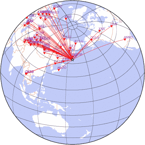 Параметры землетрясения в районе Восточнее Курильских островов, время 2025-07-31 07:21:47, широта 49.47, долгота 157.61, глубина 50 км, mb: 5.6/35 рассчитаны по станциям: