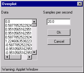 If you like this applet please download DSP on Java standalone application based on the same technology. To run this software you need JVM 1.2 and above. Download DSP on Java -> dspjava.jar After download enter java -jar dspjava.jar to start application. Andrei Akimov, Senior Software Engineer, CEME GS RAS